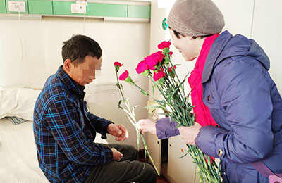 12月31日上午8点上海中大肿瘤医院携手虹口区抗癌俱乐部为患者送去温馨的康乃馨,将象征着温馨与祝福的礼品送到患者手中,并送去节日真诚的祝福,让寒冷的冬天变得温暖。