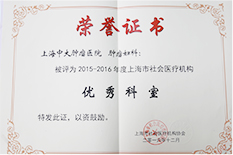 上海中大肿瘤医院妇科被评为2015~2016年度上海市社会医疗机构“优秀科室”,以表彰我院始终推进并强化医疗质量和医疗安全,不断优化服务升级,为患者提供高品质医疗服务。